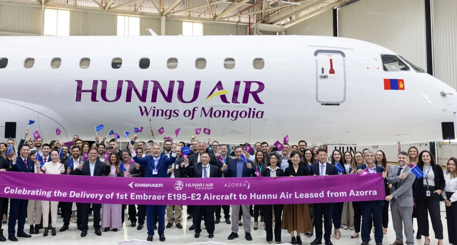 Aircraft lessor Azorra has delivered the first of two new Embraer E195-E2 aircraft to Hunnu Air, marking the first E2 to operate in Mongolia.