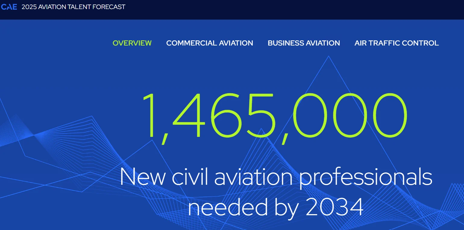 Global aviation training and operat6ions specialist CAE has estimated that the sector needs to hire 1.5 million civil aviation professionals by 2034.